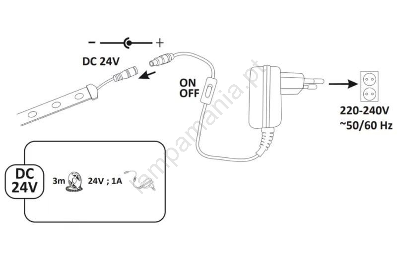 • Fita LED com interruptor no cabo de alimentação.