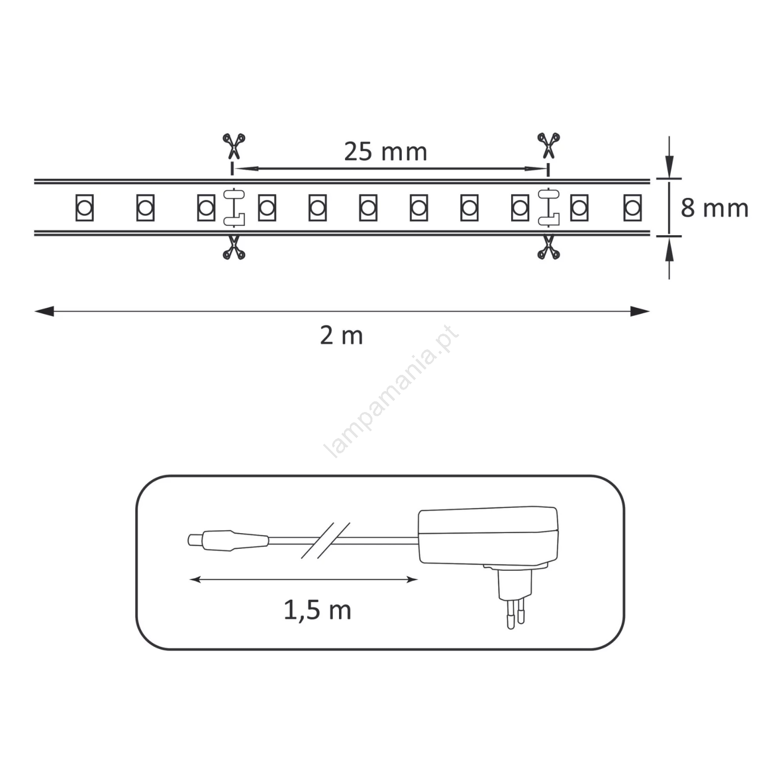 • Comprimento: 2 m.