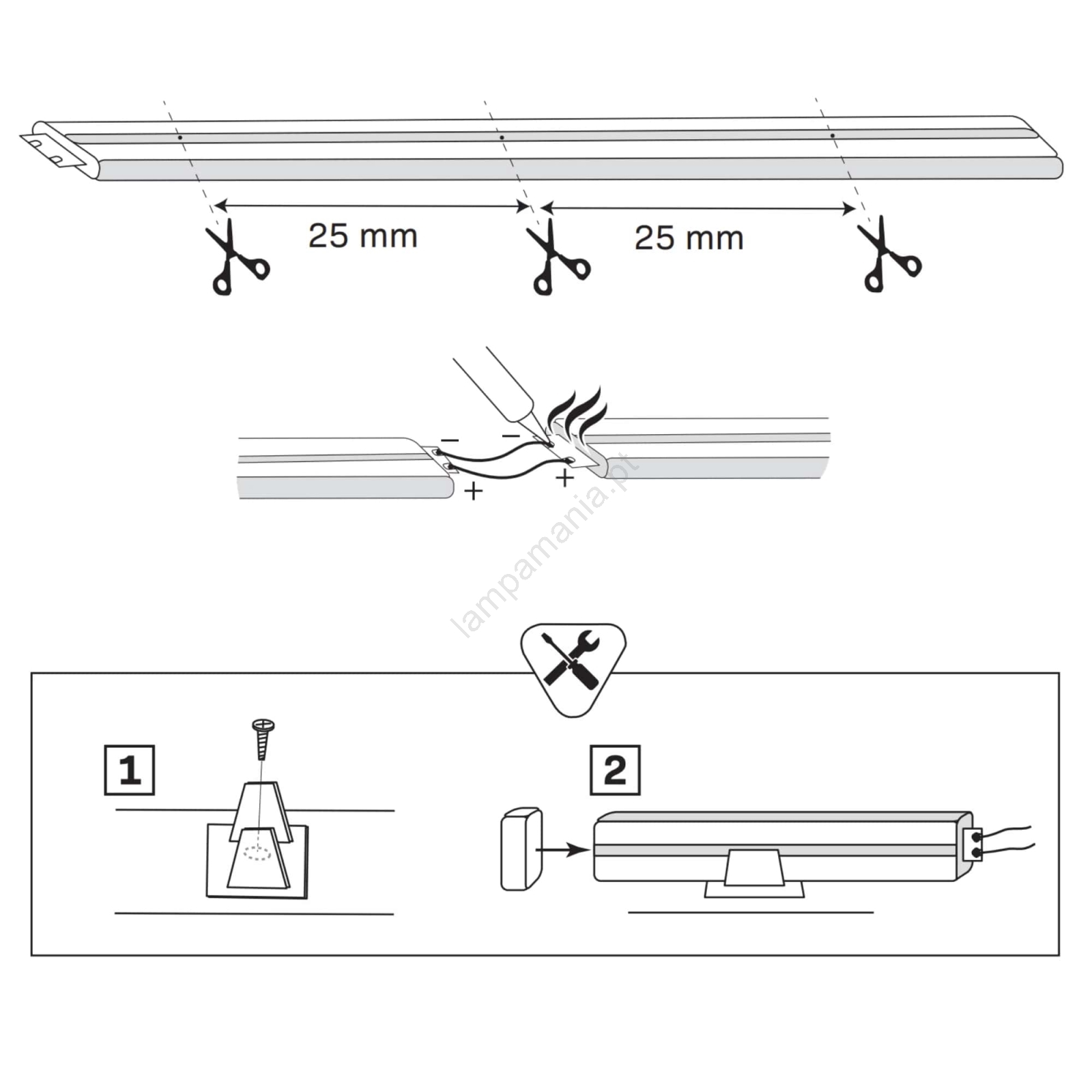 • Graças ao seu tamanho reduzido, mas de alta intensidade, a tira pode ser utilizada em locais onde outras fontes de luz são difíceis de instalar.