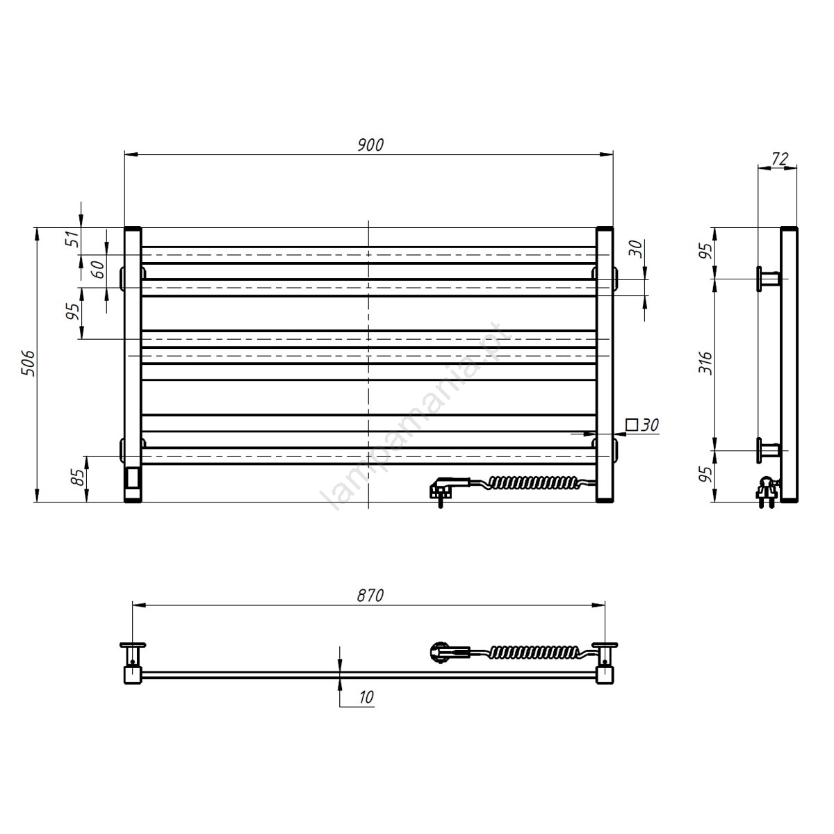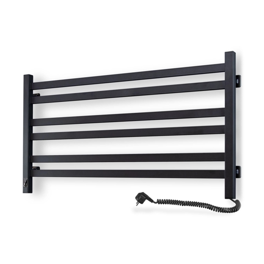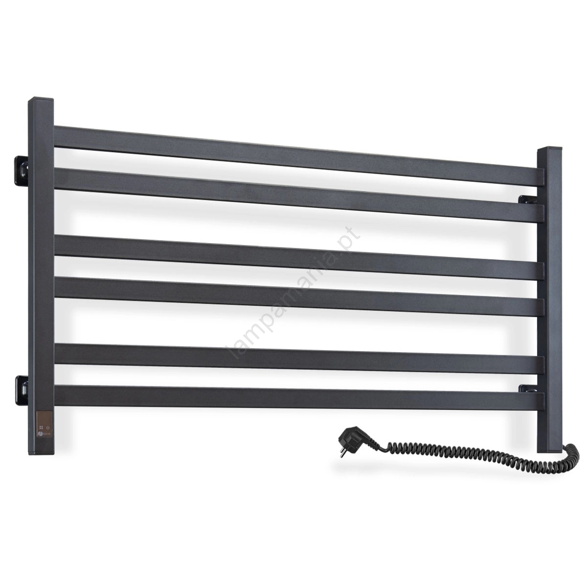 Radiador toalheiro para casa de banho com termóstato AVANGARD 316W/230V 50,6 cm IP44 preto, versão direita, de perfil quadrado