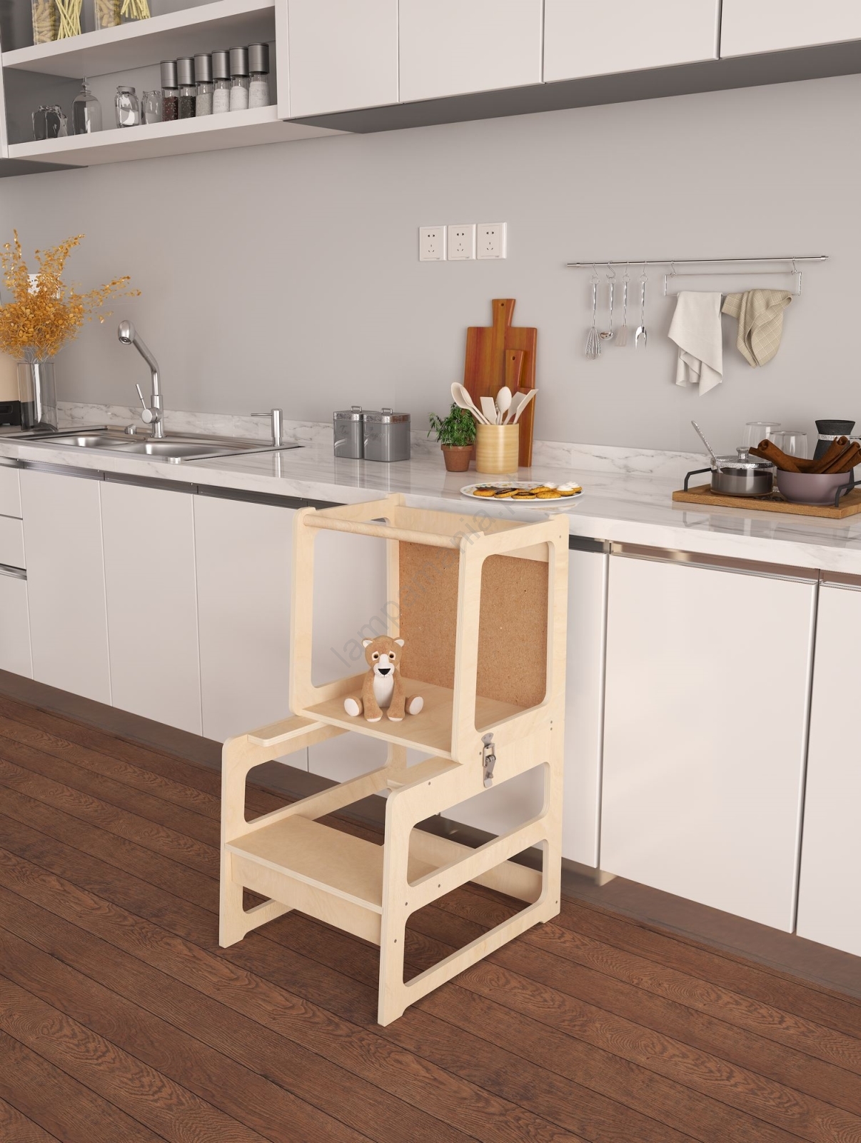 • A torre de aprendizagem infantil permite que as crianças pequenas participem com segurança em cozinhar, assar e outras atividades domésticas.