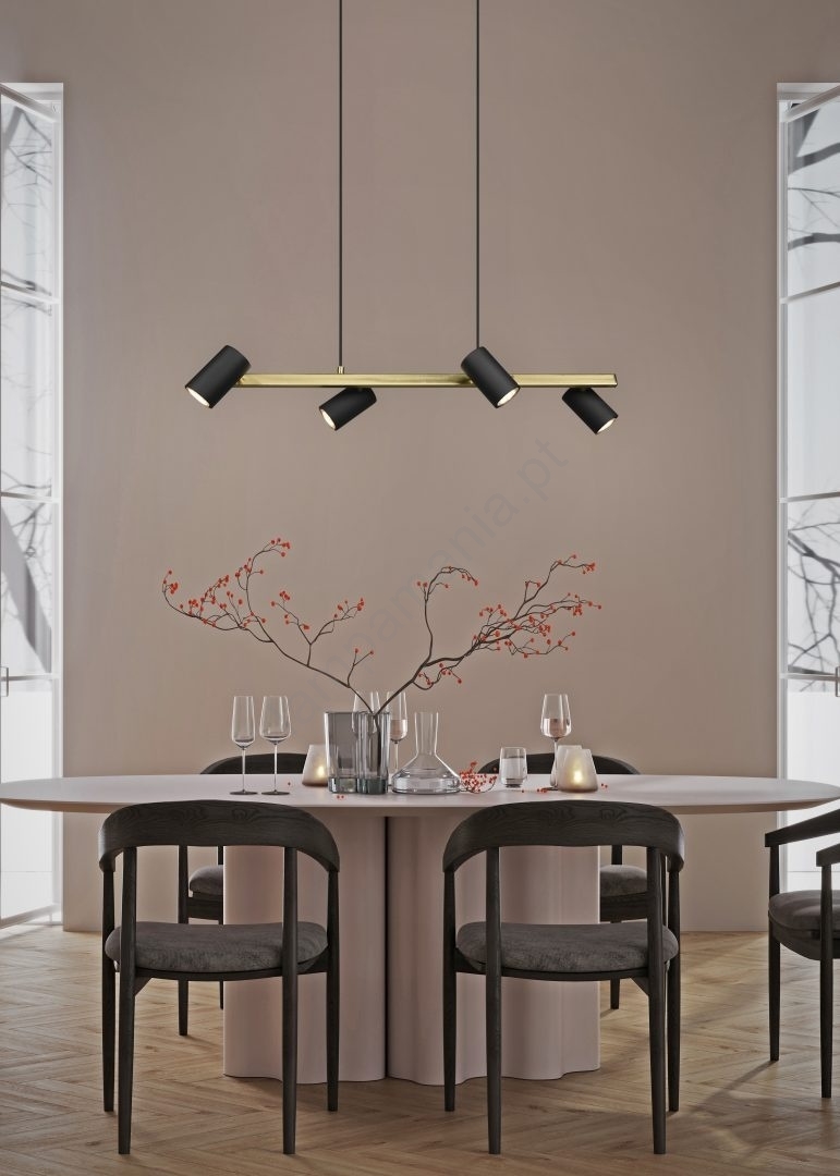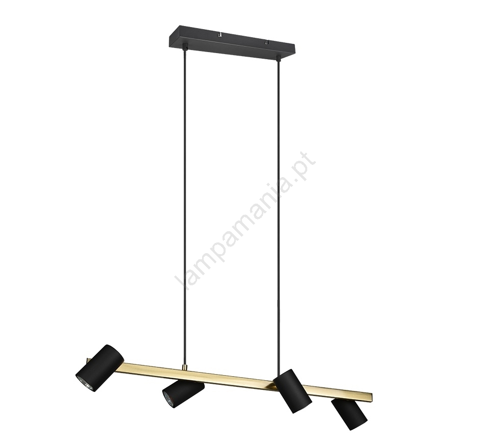Trio - Lustre suspenso em cabo MARLEY 4xGU10/35W/230V preto/dourado caracteriza-se por um design agradável e funcional.  Uma lâmpada com casquilho GU10 é adequada para a iluminação Aqui, pode comprar outras lâmpadas a preços vantajosos. Terá um complemento interessante para a sua casa.