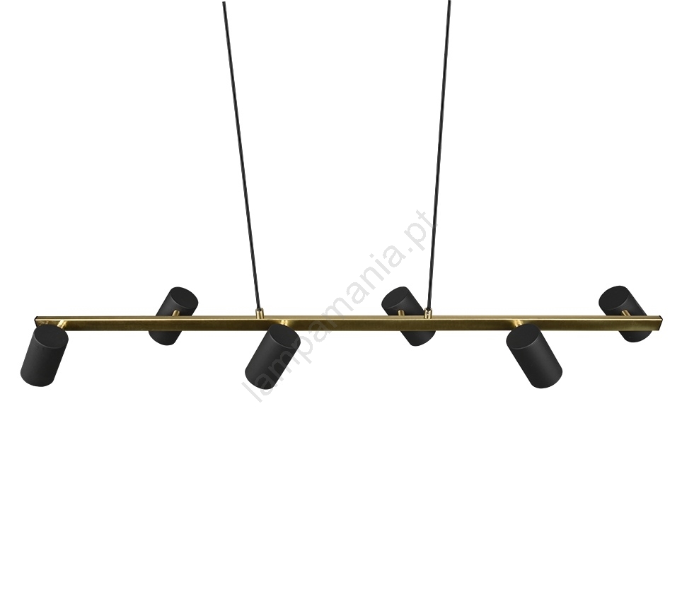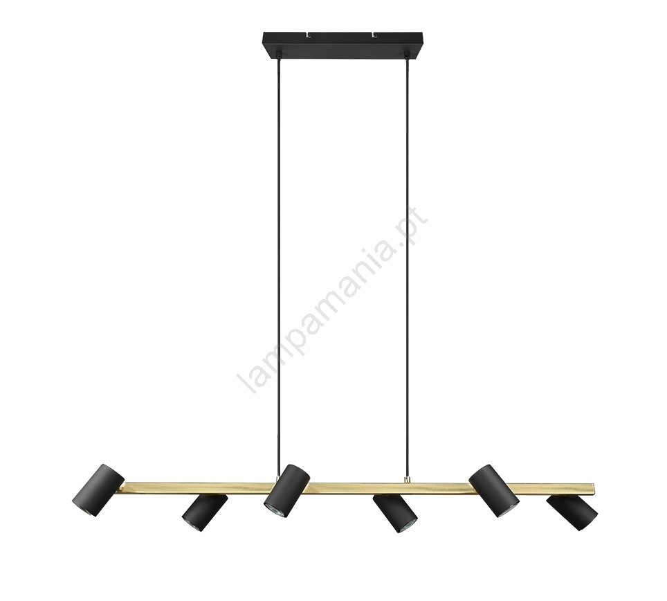 Trio - Lustre suspenso por cabo MARLEY 6xGU10/35W/230V preto/dourado caracteriza-se por um design agradável e funcional.  Uma lâmpada com casquilho GU10 é adequada para a iluminação Aqui, pode comprar outras lâmpadas a preços vantajosos. Terá um complemento interessante para a sua casa.