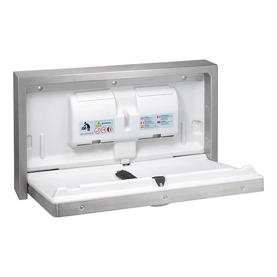 • Muda-fraldas de parede com dimensões 90 x 52 cm, ideal para espaços públicos.