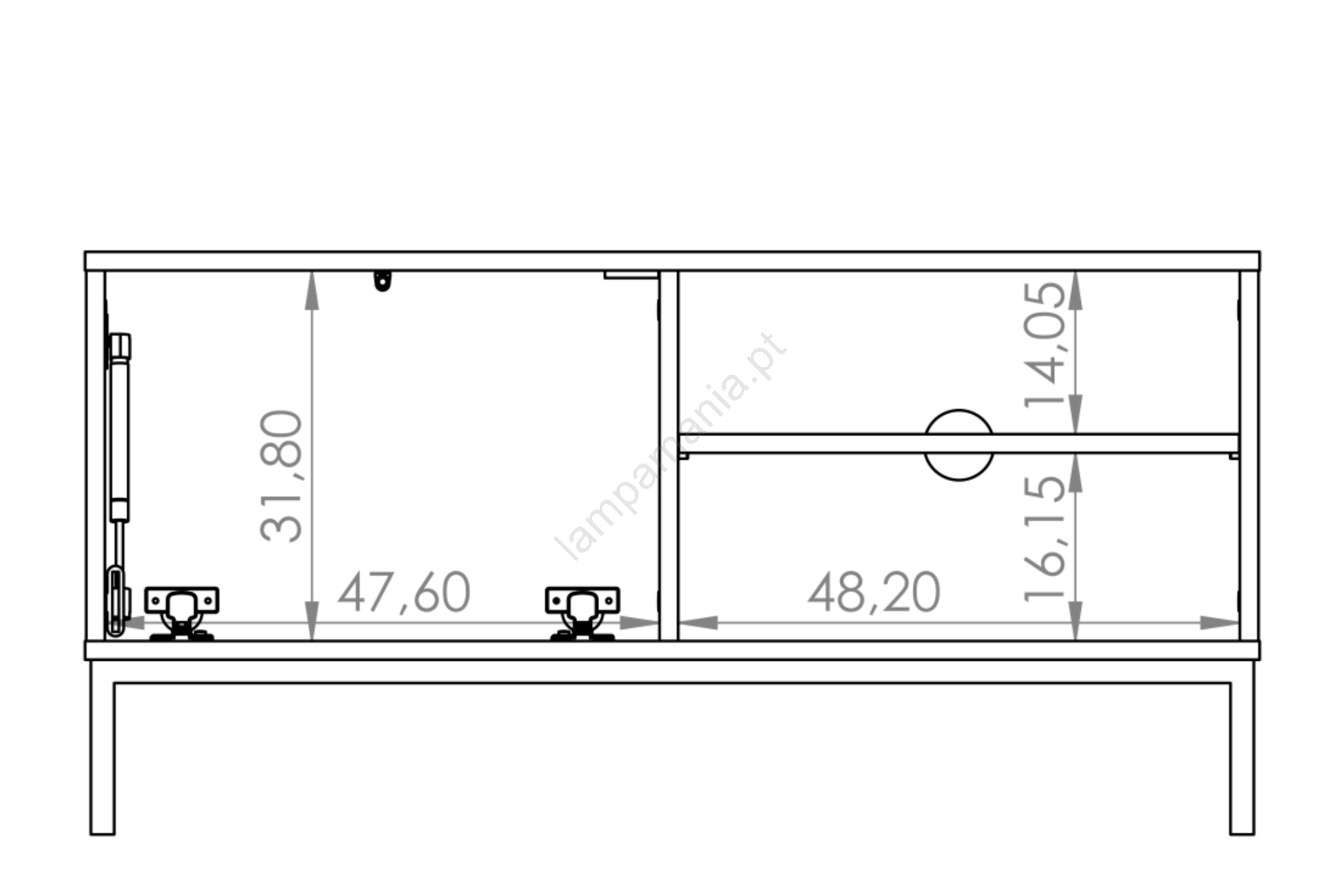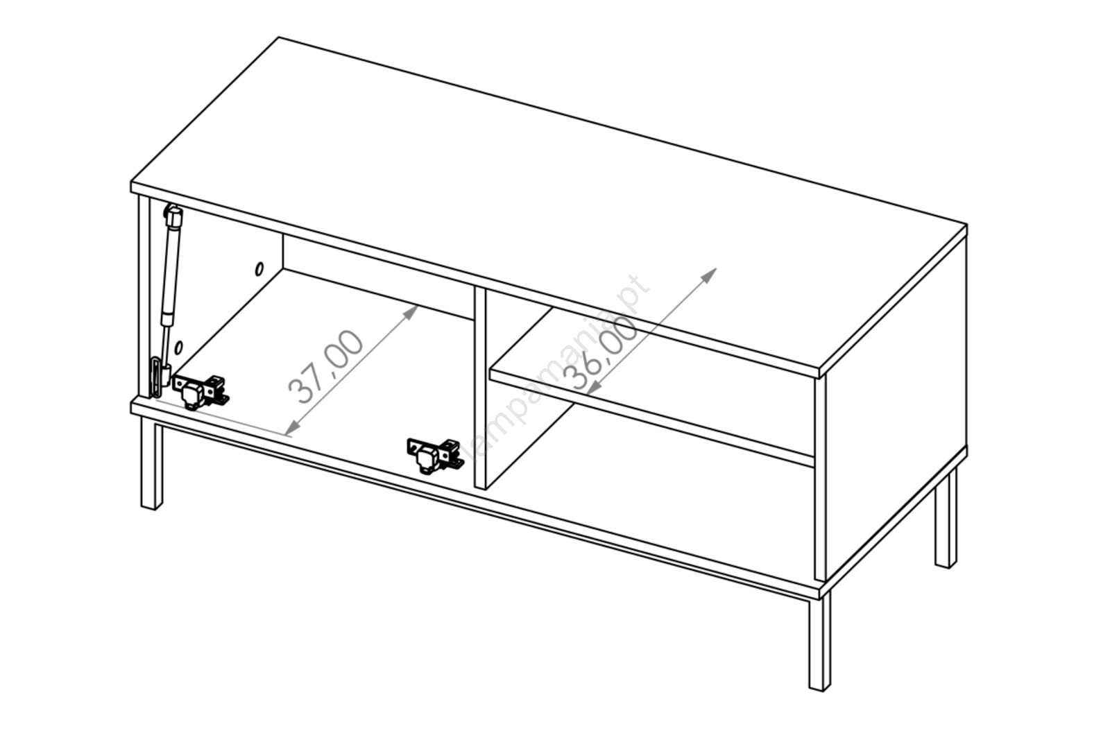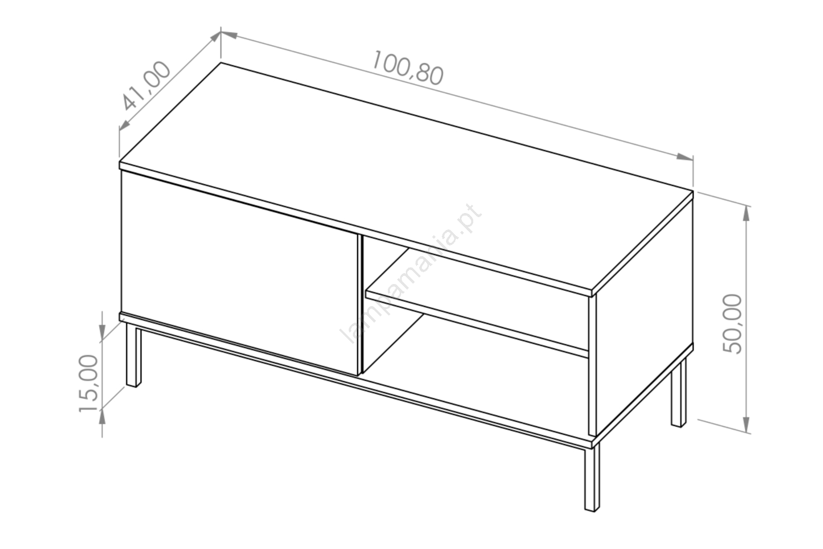 • Pés metálicos com altura de 15 cm.