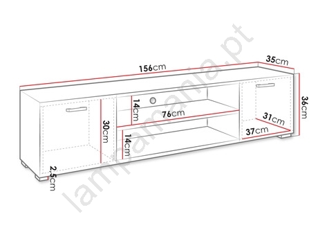 • Capacidade de carga: parte superior até 25 kg, prateleiras até 5 kg.