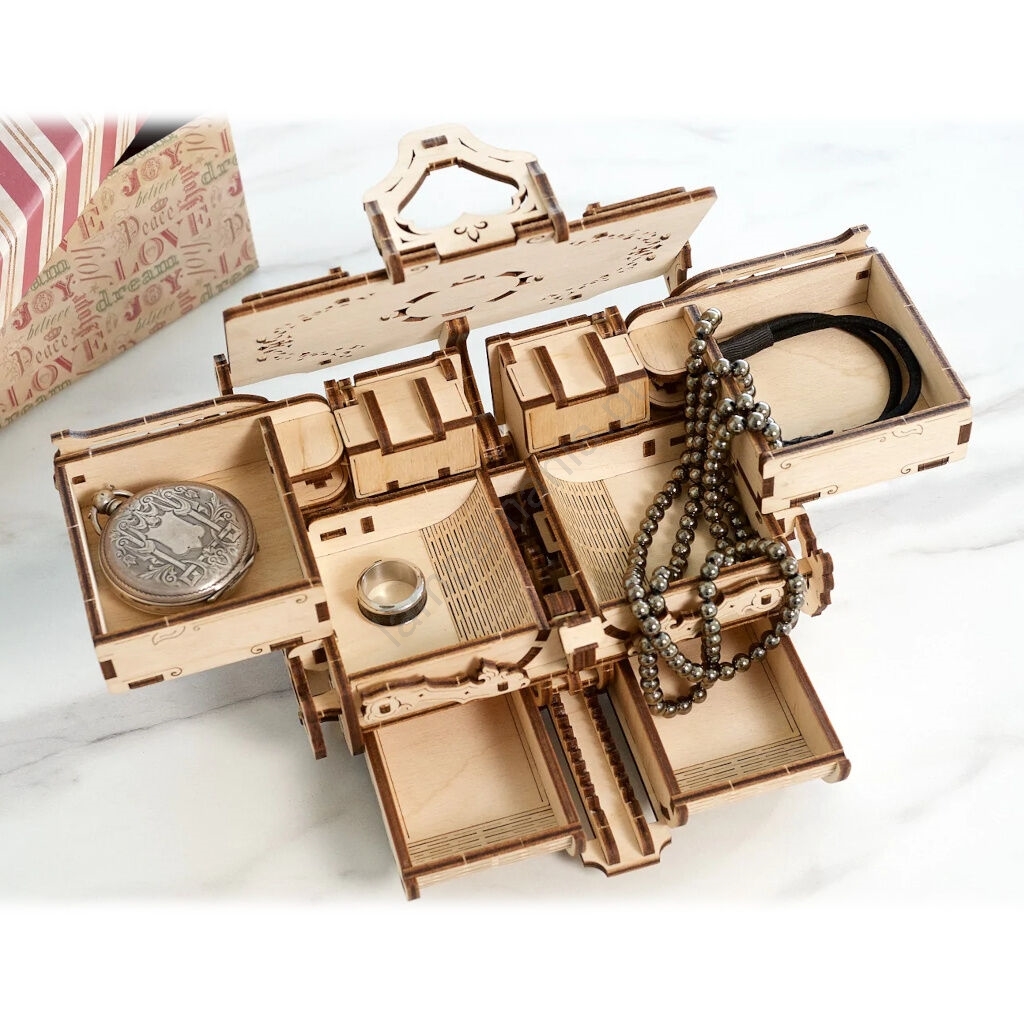 Ugears - Puzzle 3D mecânico de madeira Caixa para jóias vintage