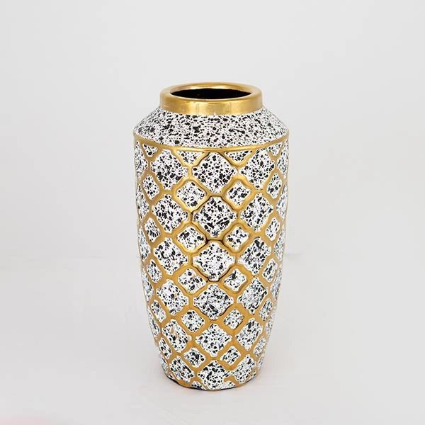 Vaso cerâmico 25x13 cm branco/dourado/preto