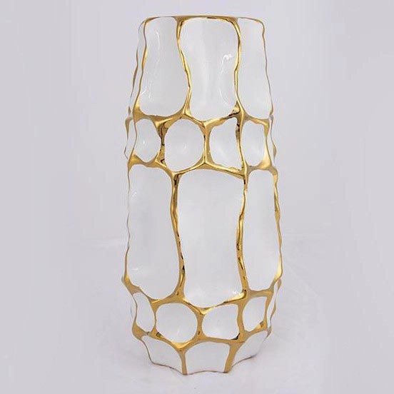 Vaso cerâmico 31,5x15,5 cm dourado/branco