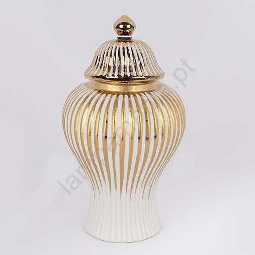 Jarra de cerâmica 35x18,5 cm dourado/branco