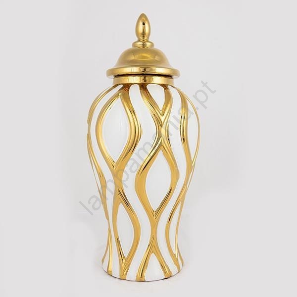 Jarra de cerâmica 42,6x18,8 cm dourado/branco