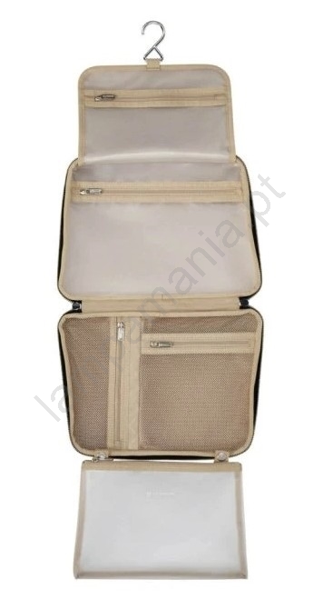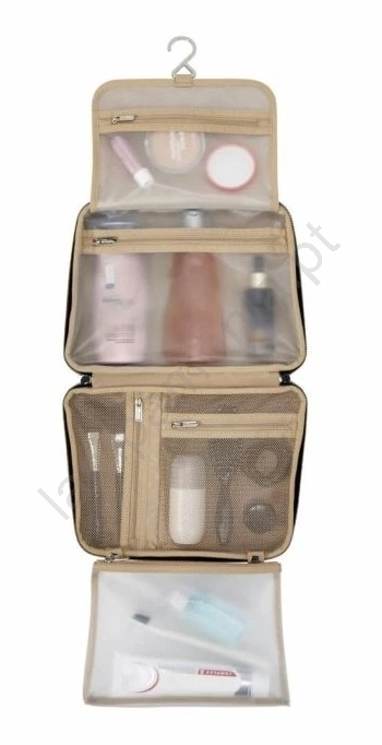 • Necessaire dobrável para produtos de higiene pessoal com opção de pendurar.