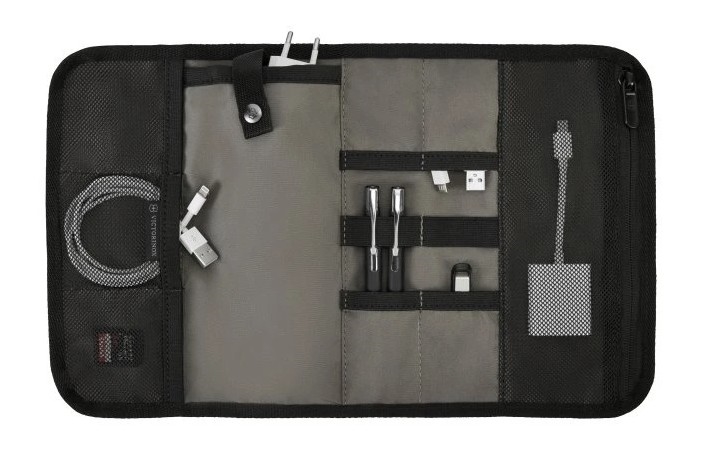 • Organizador removível para carregadores, cabos, USB, canetas e outros itens essenciais (pode ser usado separadamente).