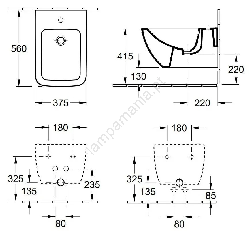 • A embalagem inclui o bidé, sem sifão e sem misturador.