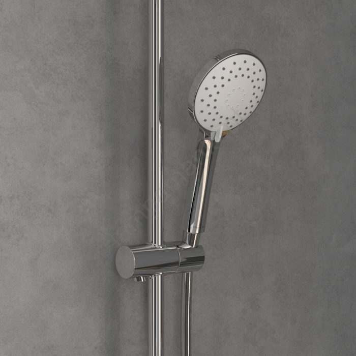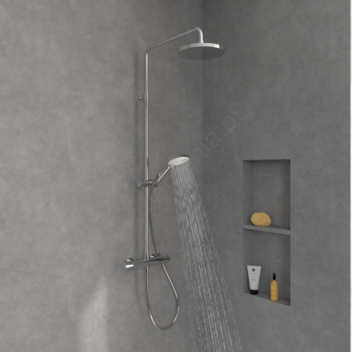 • Conjunto inclui: barra de duche com suporte deslizante, duche de mão, duche de cabeça, mangueira de duche (150 cm), braço para duche de cabeça, misturador.