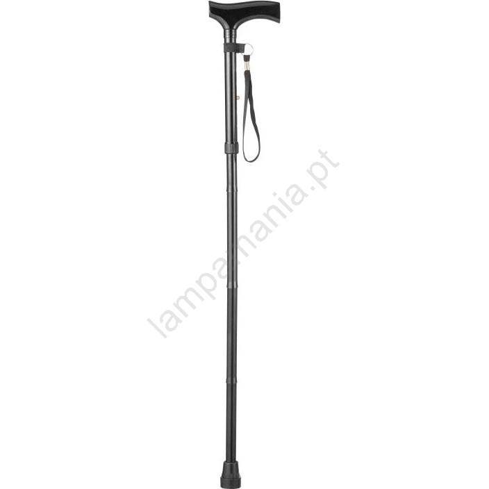 • A bengala dobrável vem equipada com um punho ergonómico em madeira.