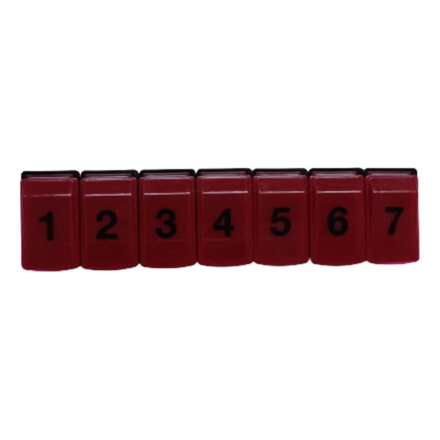 • O organizador é constituído por sete compartimentos numerados (cada um correspondente a um dia), alojados numa caixa principal.