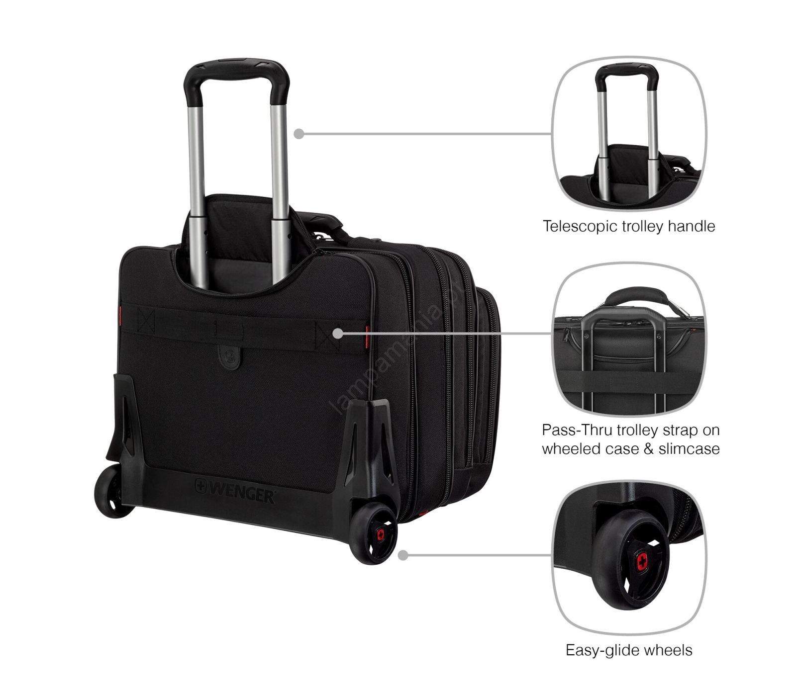 Wenger - Mala de viagem com rodas 25 l 17" + bolsa para portátil 15,6" Patriot preta