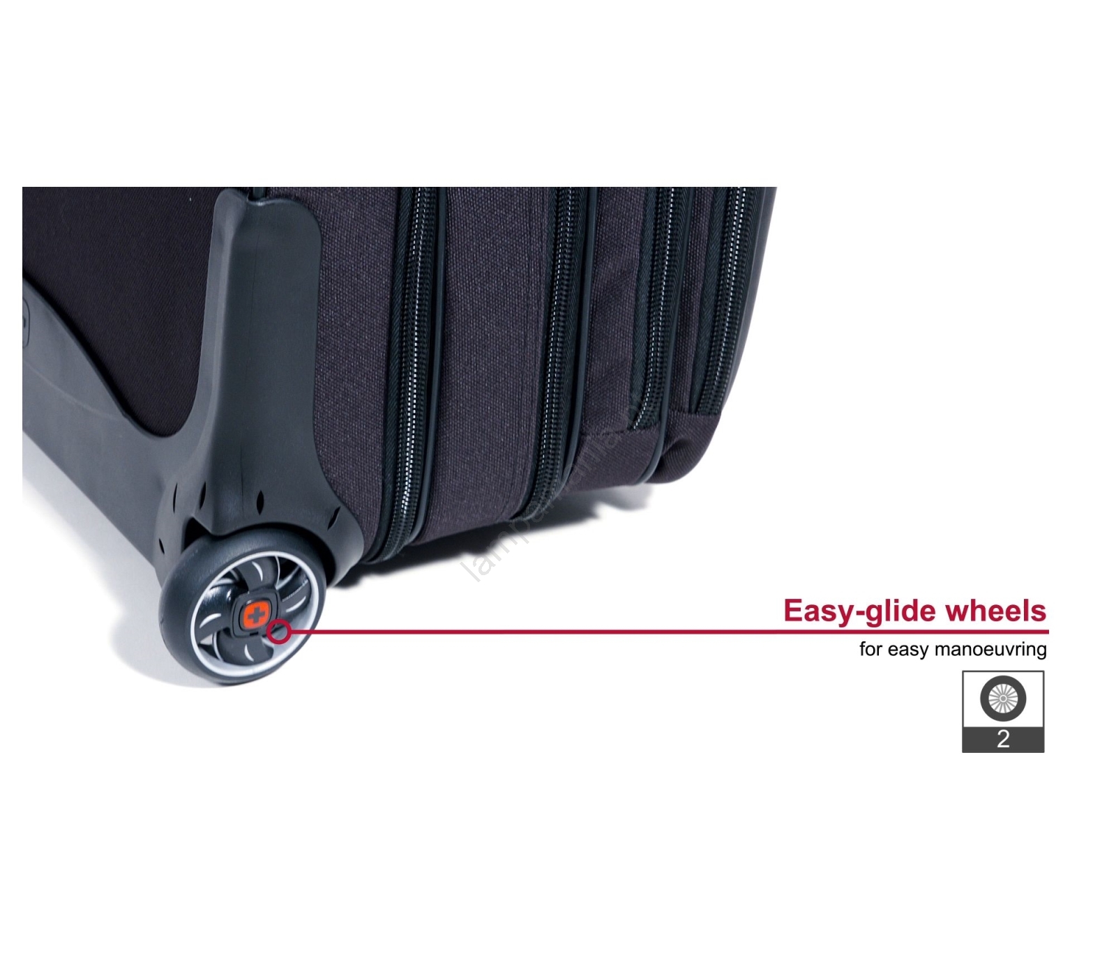 • A faixa Pass-Thru desliza sobre a alça do Comp-U-Roller ou outras malas com rodas, facilitando o transporte de várias bolsas.