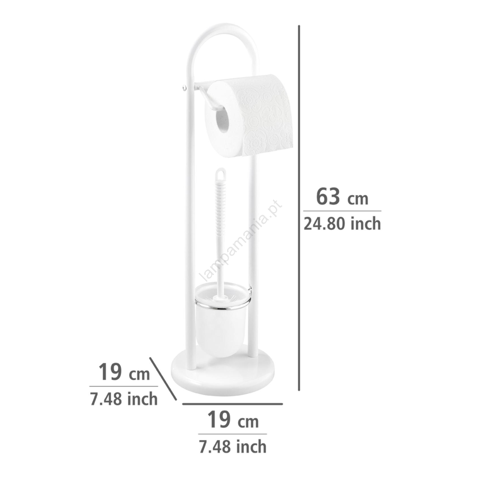 • Combinação de suporte independente para papel higiénico e escova de sanita num só.