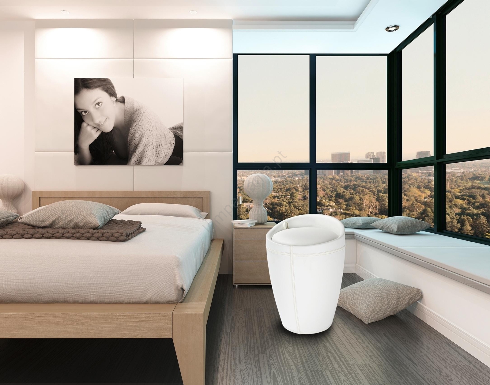 • Banqueta moderna para casa de banho com aspeto elegante de pele branca.