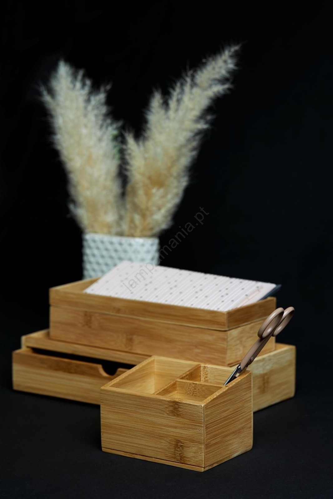 • Organizador prático com três compartimentos para joias, cosméticos ou material de escritório.
