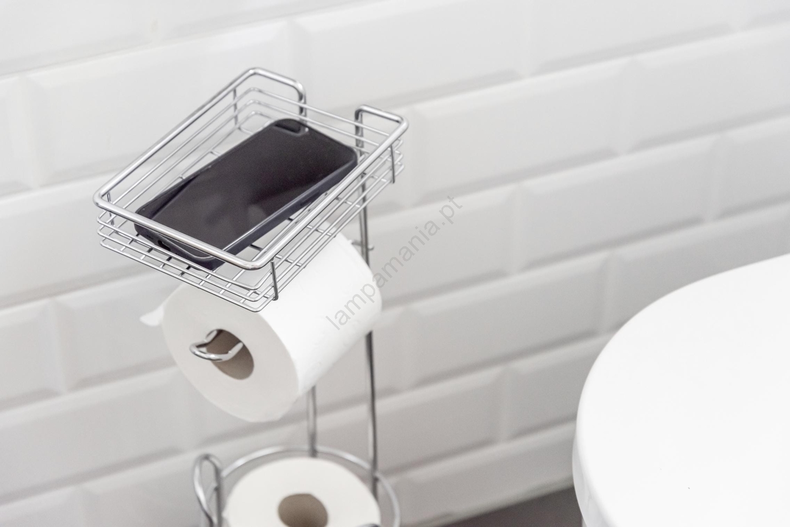 • Prático suporte 3 em 1 para papel higiénico com compartimento.