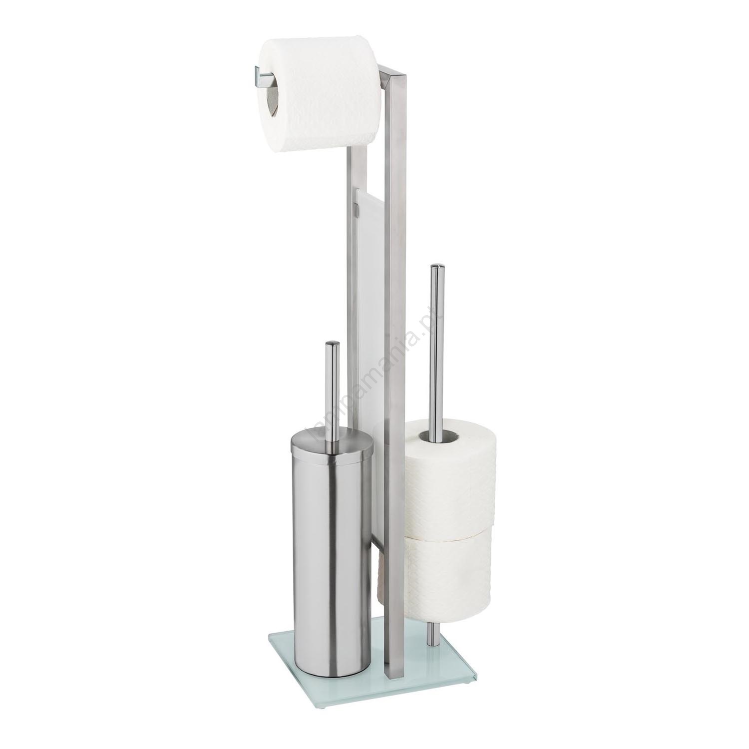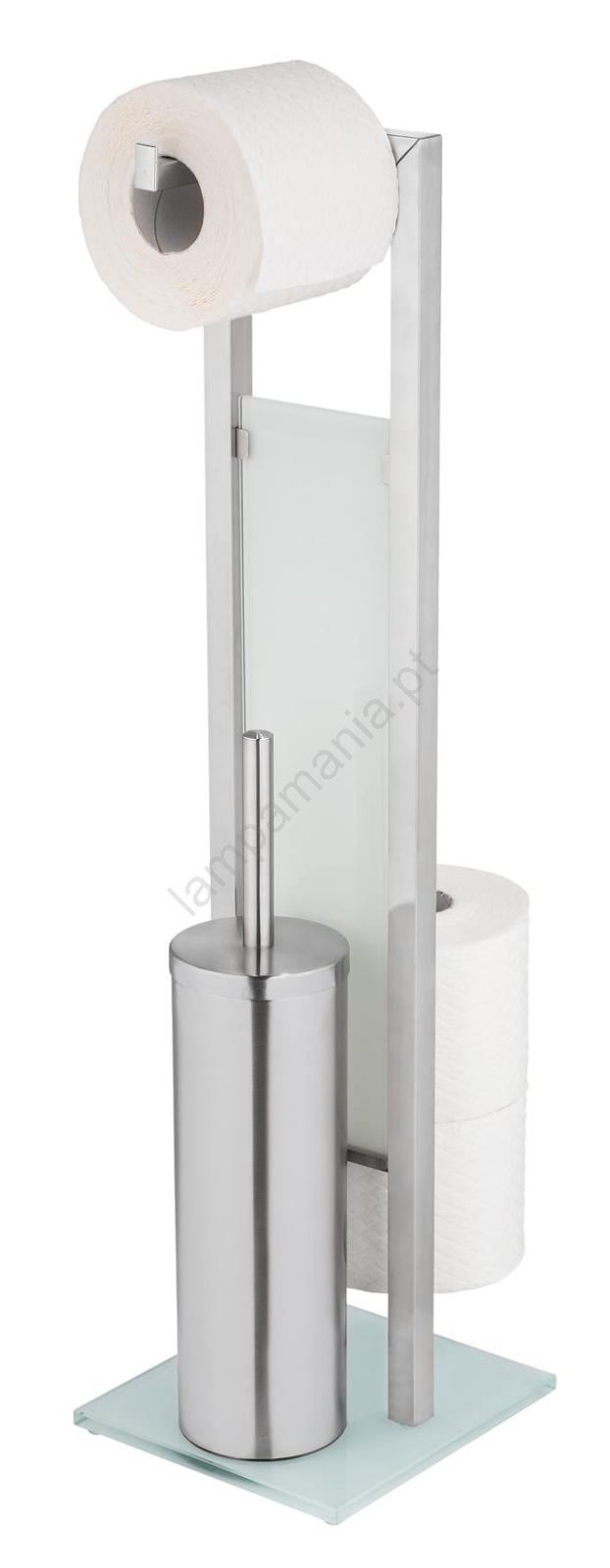 • Conjunto prático 3 em 1: escova de sanita, suporte para papel higiénico e depósito para rolos de reserva.