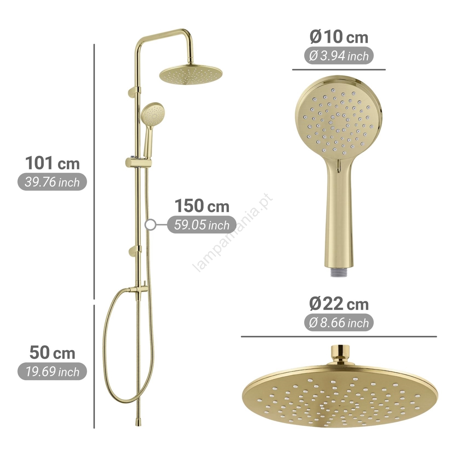• Sistema de duche de luxo em acabamento dourado para um visual elegante na casa de banho.