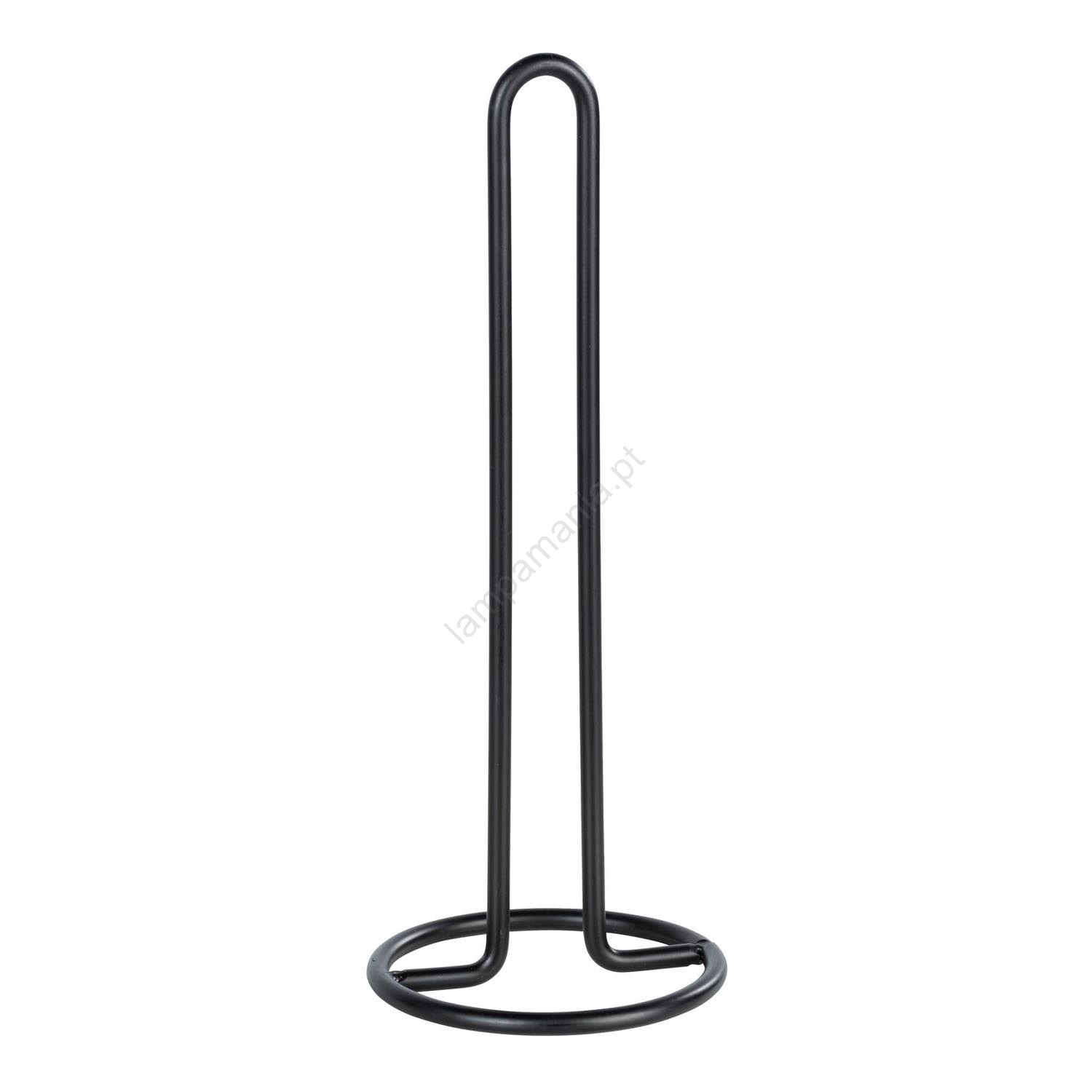 • Suporte elegante para rolos de cozinha em metal preto.