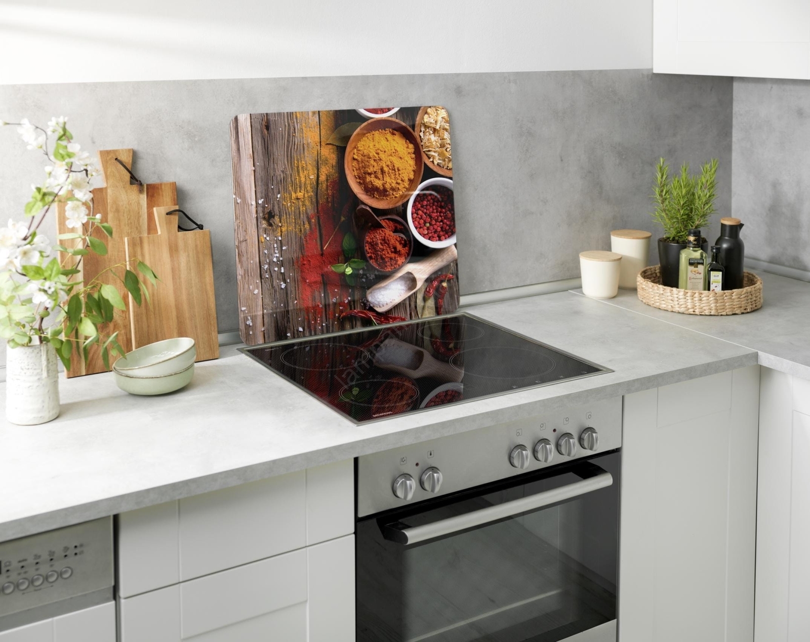 • Tampa de cozinha elegante com motivo de especiarias para um aspeto moderno da cozinha.
