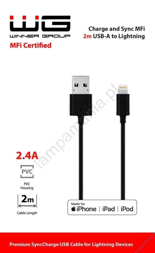 Winner Group - Cabo USB MFI Lightning / USB-A 2m preto