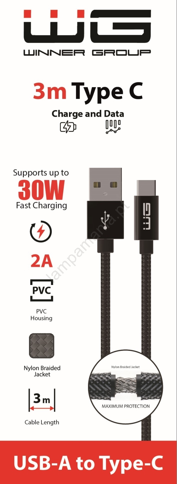 Winner Group - Cabo USB USB-C / USB-A 30 W 3 m preto