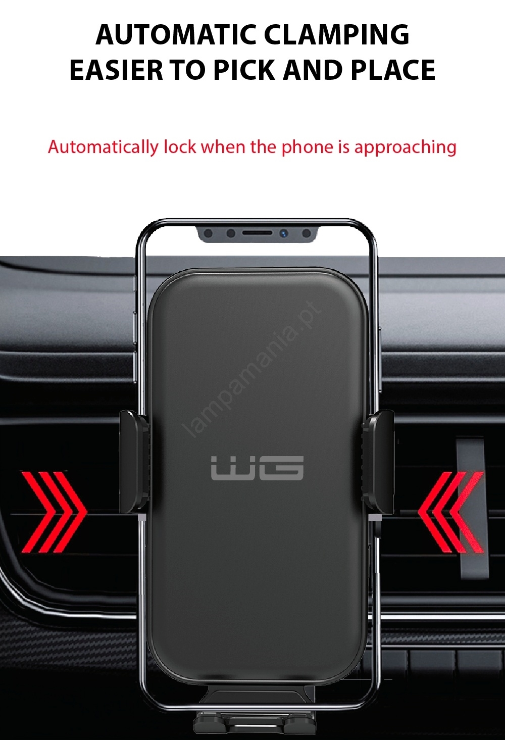 • Este suporte e carregador automóvel permite o fecho automático, permitindo inserir e retirar o telemóvel com facilidade.