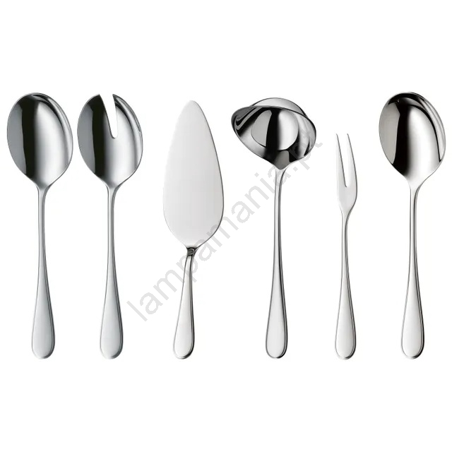 • Conjunto completo para 12 pessoas – 66 peças que incluem todos os talheres e utensílios de servir necessários para uma grande mesa.