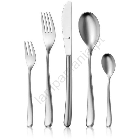 • Conjunto para 6 pessoas (30 peças) — inclui garfos, facas, colheres, talheres de sobremesa e para café.