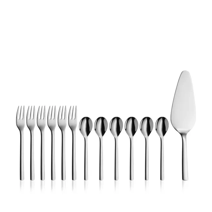 • O conjunto inclui 6 garfos de sobremesa, 6 colheres para café/chá e 1 espátula prática para bolo.