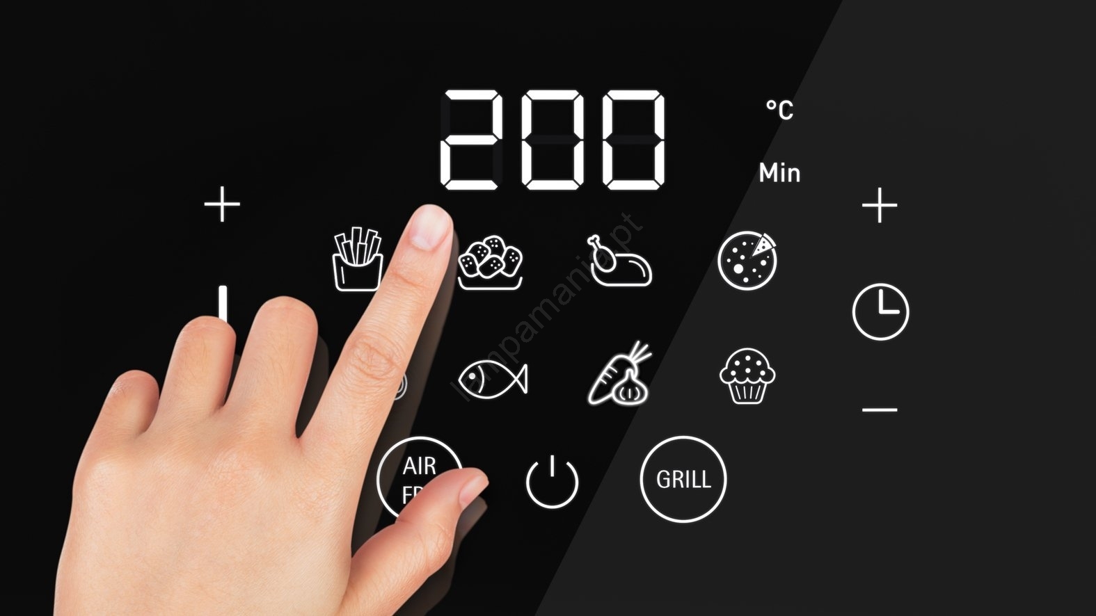 • Configurações automáticas e manuais permitem fritar, grelhar e desidratar com perfeição e sem esforço.