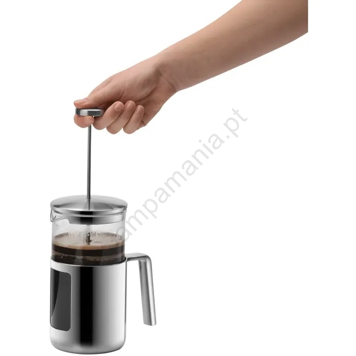 • Sistema de êmbolo com um filtro de malha fina em Cromargan, que separa eficazmente a borra de café da bebida pronta.