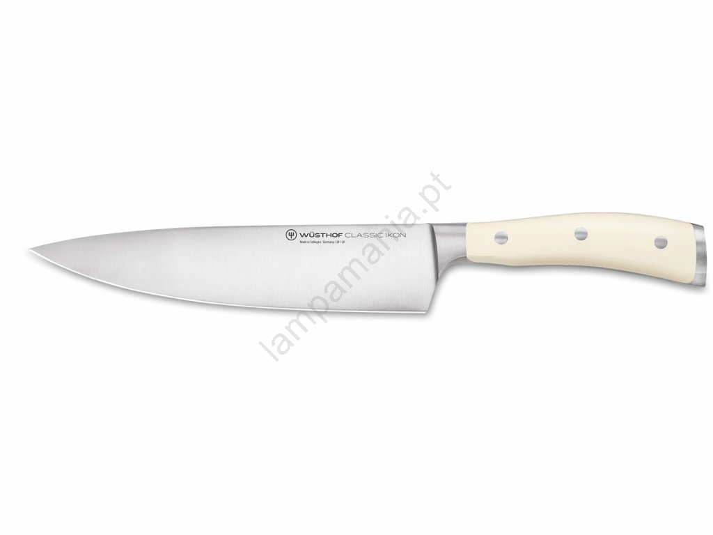 • O conjunto inclui: uma faca de chef 20 cm, uma faca de presunto 20 cm, e uma faca de legumes 9 cm.