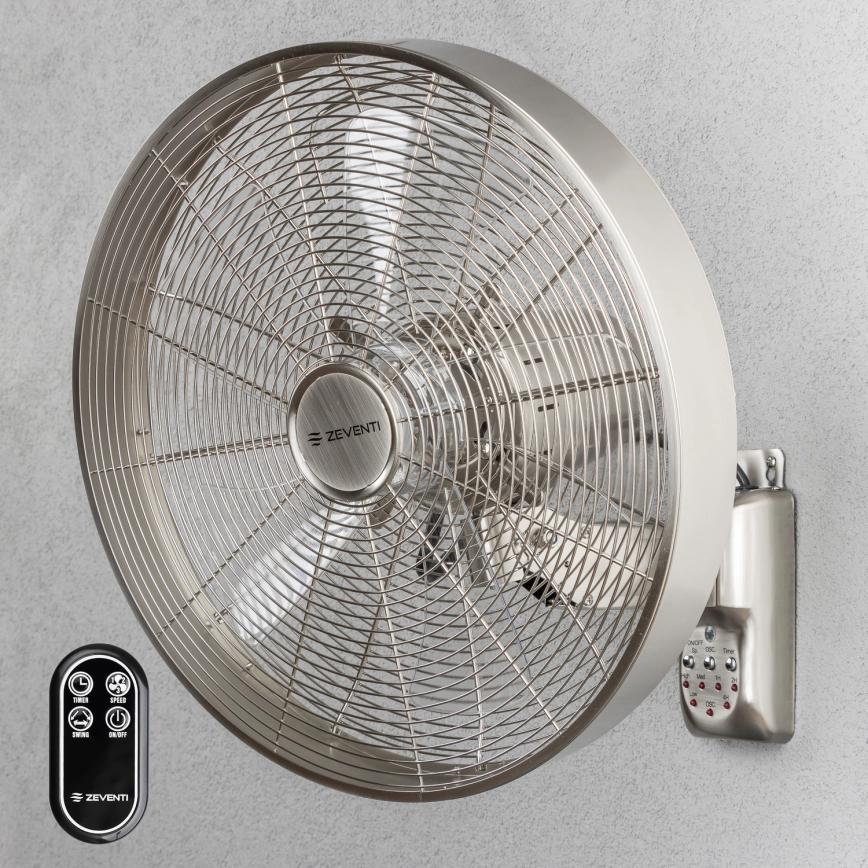 • ZEVENTI - Ventoinha de parede FREEZE 50W/230V diâmetro 40 cm cromado mate + comando