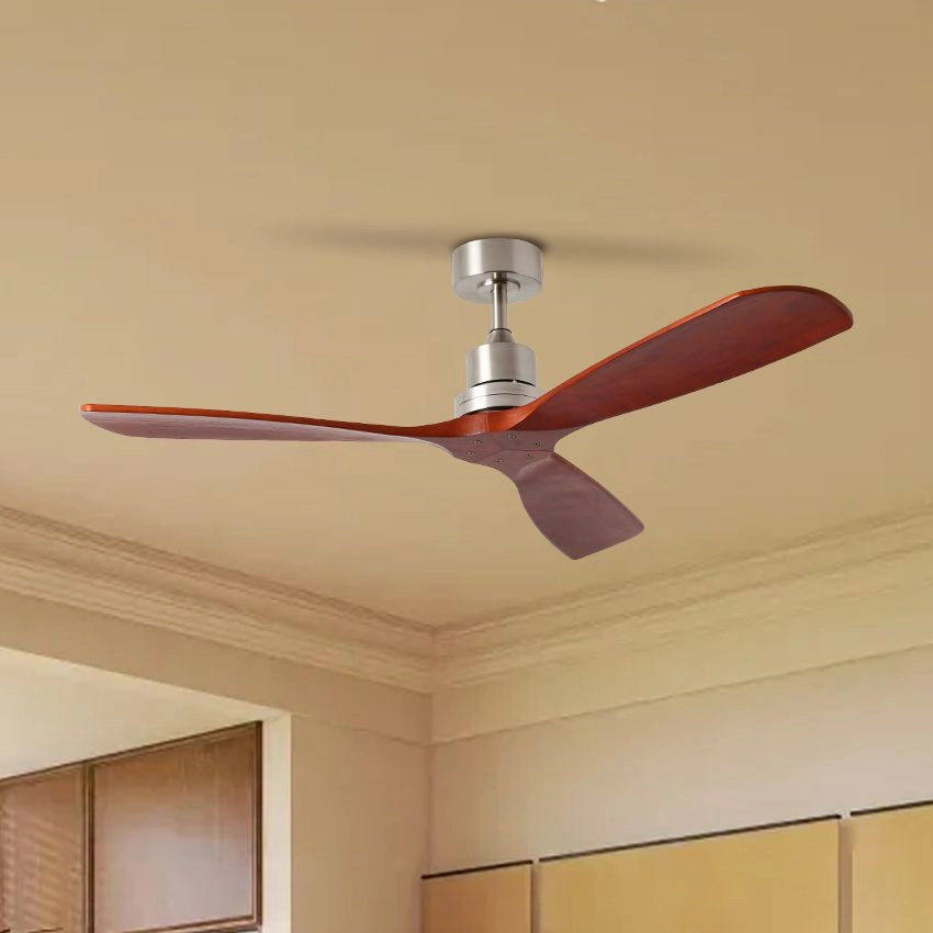 • ZEVENTI - Ventilador de teto LIONI Wi-Fi Tuya cromo mate/carvalho + controlo remoto