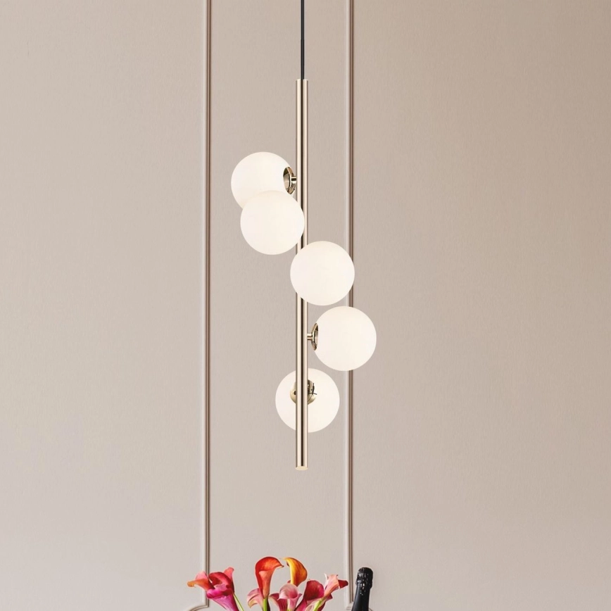 Zuma Line - Candeeiro suspenso 5xG9/4W/230V dourado caracteriza-se por um design agradável e funcional.  Uma lâmpada com casquilho G9 é adequada para a iluminação Aqui, pode comprar outras lâmpadas a preços vantajosos. Terá um complemento interessante para a sua casa.